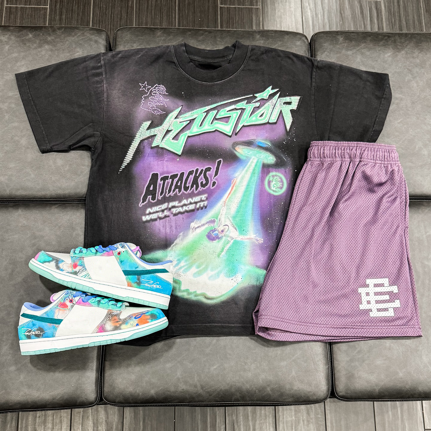 Alien Casual Street Retro T-shirt Mesh Shorts Two-Piece Set