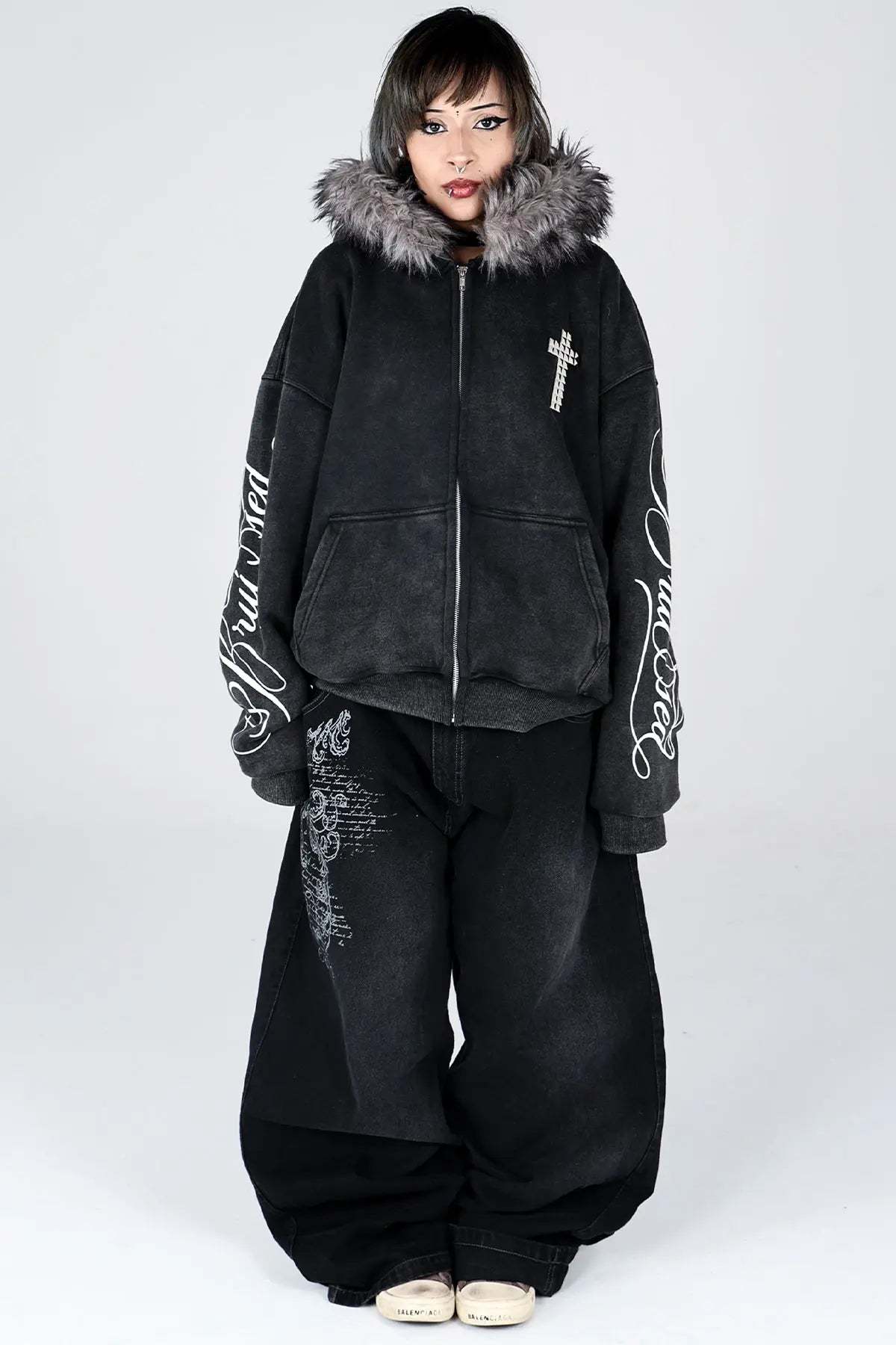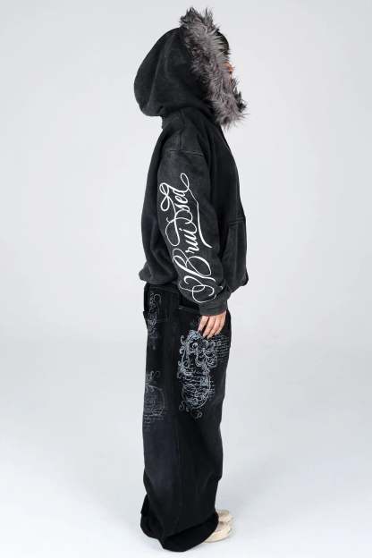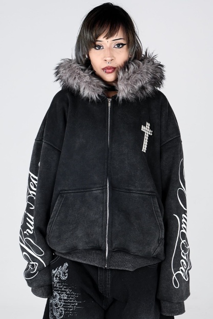 This heavyweight cotton zip-up is made for comfort and durability, with a soft feel that lasts. It features a relaxed fit and detailed screen print built to handle life’s toughest moments. Simple, reliable, and made to help you express your true self, no matter what.e