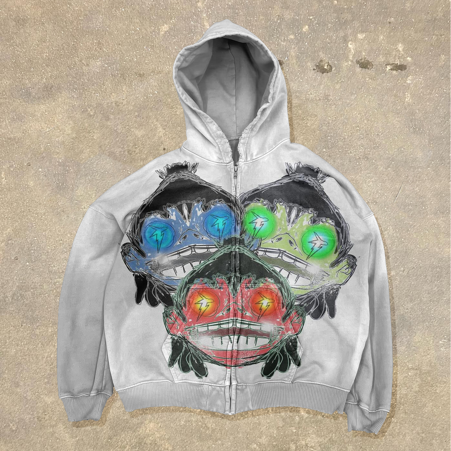 Funny Cartoon Print Long Sleeve Zipper Hoodies