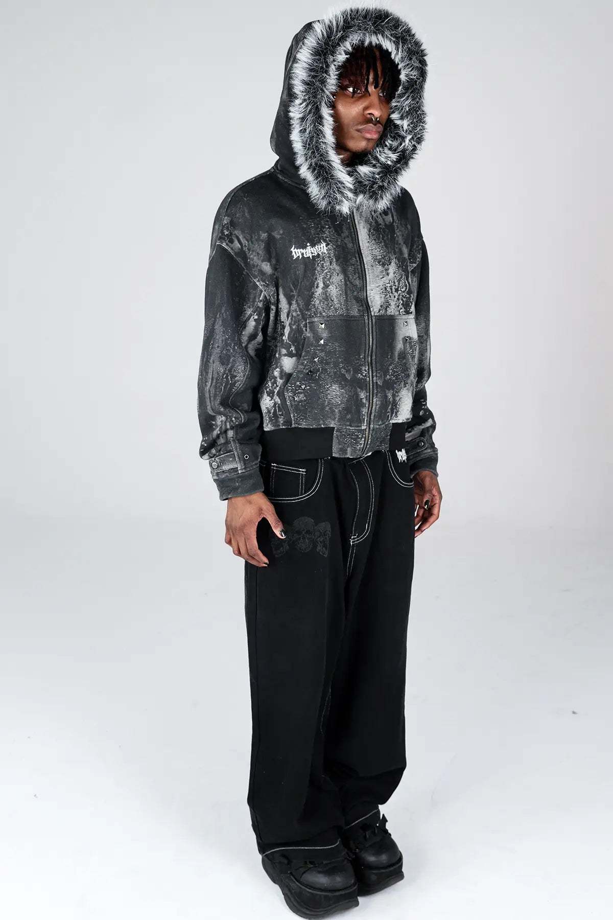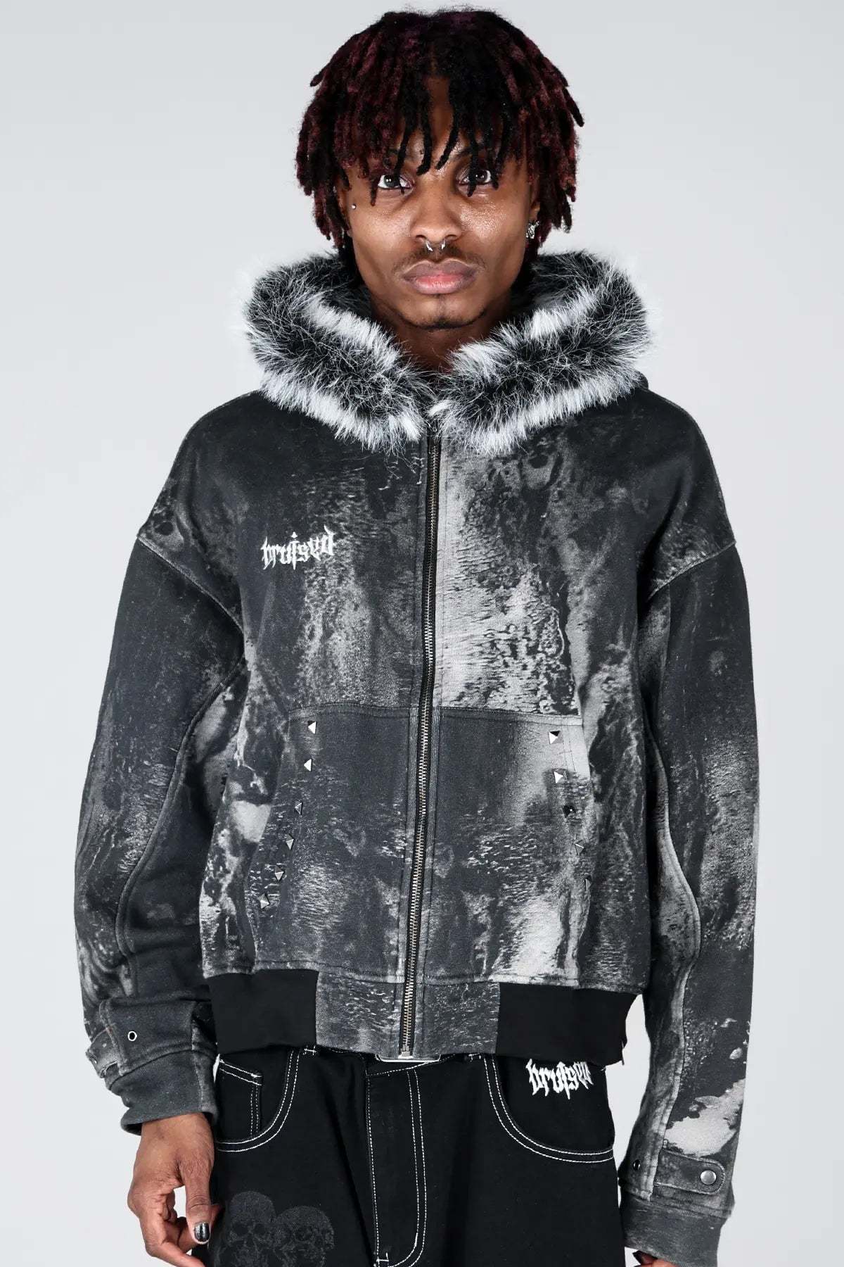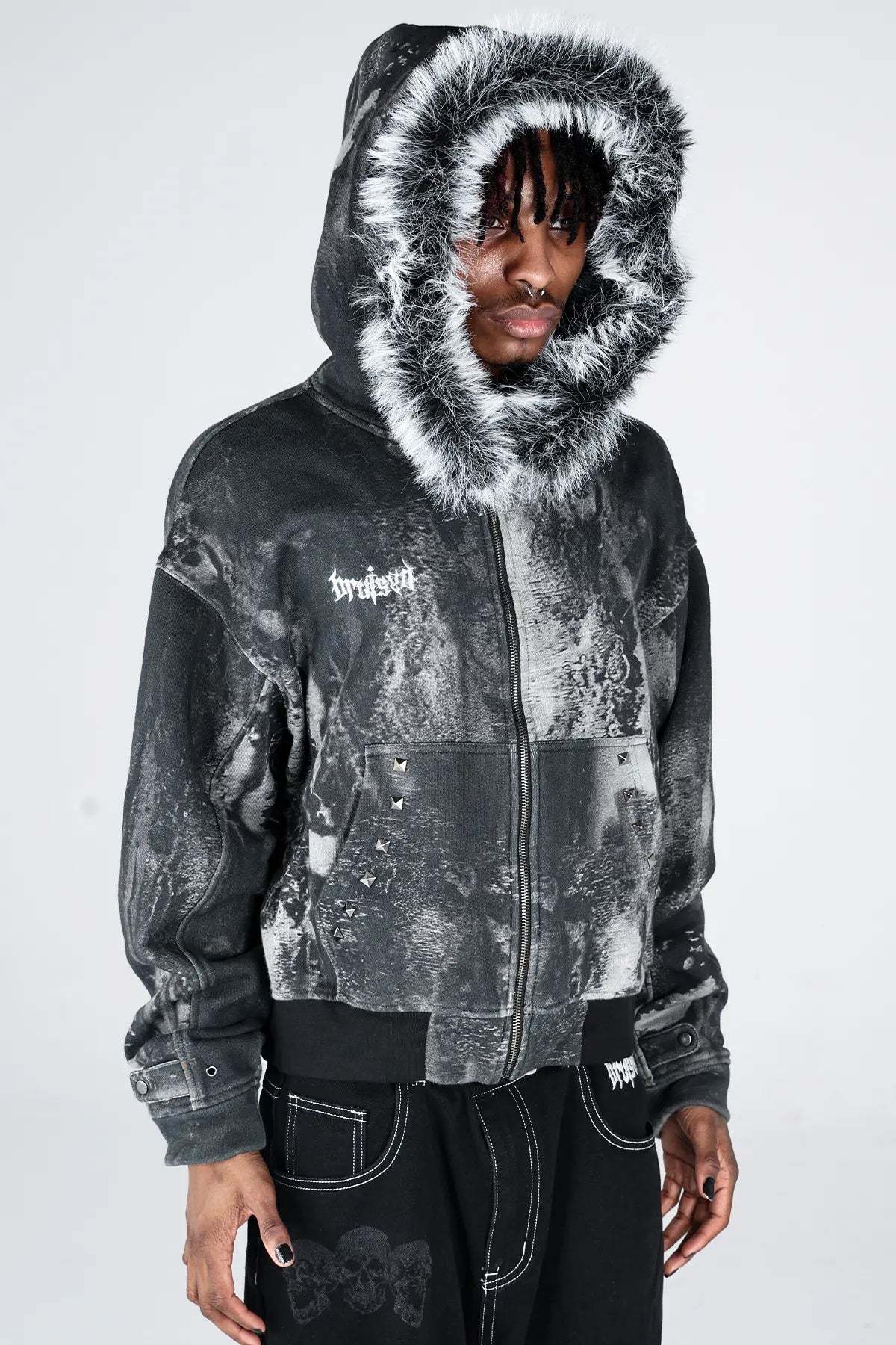 Noir Studded Zip Hoodie