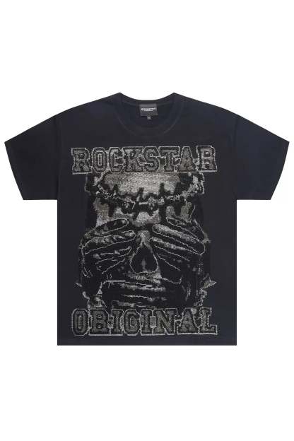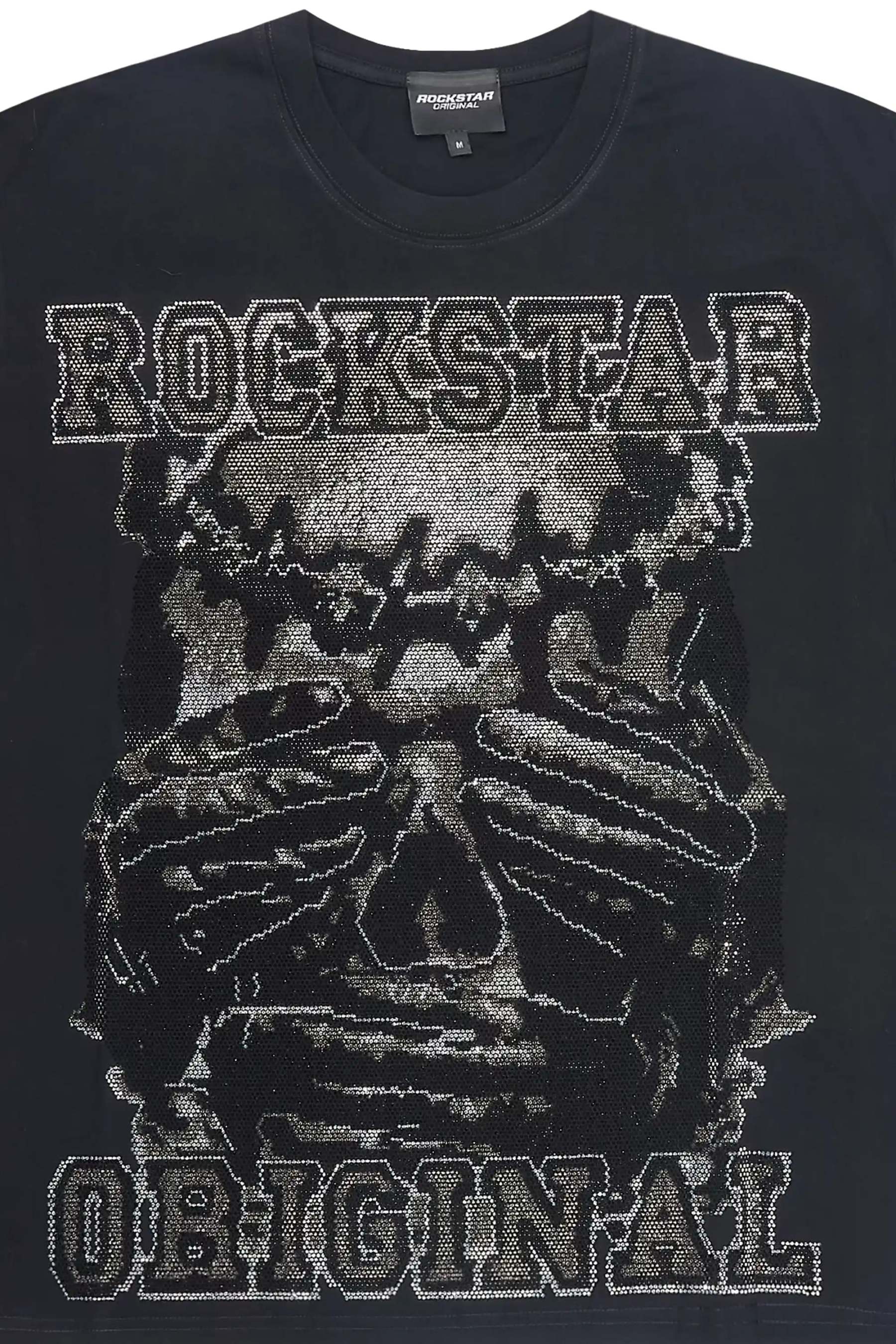 Move In Silence Black Graphic Rhinestone T-Shirt