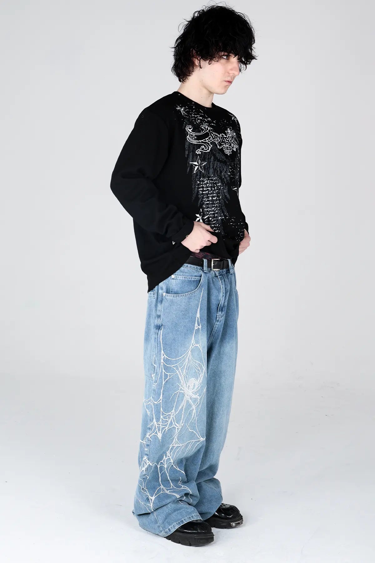 These mid-weight denim jeans are crafted for durability and everyday comfort, with premium cotton that feels great and lasts. Designed with a relaxed, baggy fit & a wide leg opening, they’re made to move with you. Finished with detailed screenprint that'll last life's roughest moments.
