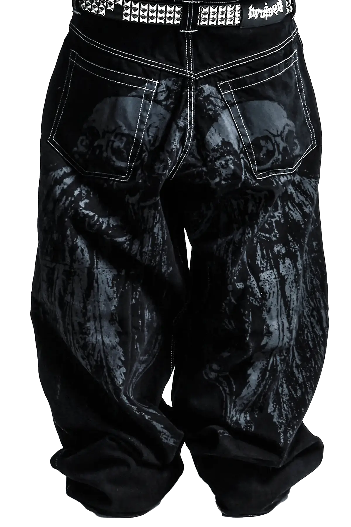 These mid-weight denim jeans are crafted for durability and everyday comfort, with premium cotton that feels great and lasts. Designed with a relaxed, baggy fit & a wide leg opening, they’re made to move with you. Finished with detailed screenprint that'll last life's roughest moments.