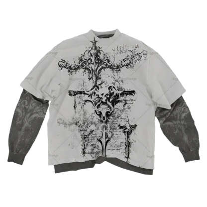 WHITE CRUCIFIX LONG SLEEVE TEE