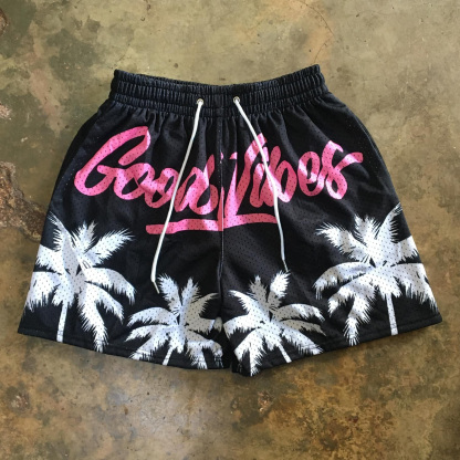 Good Vibes Print Mesh Shorts