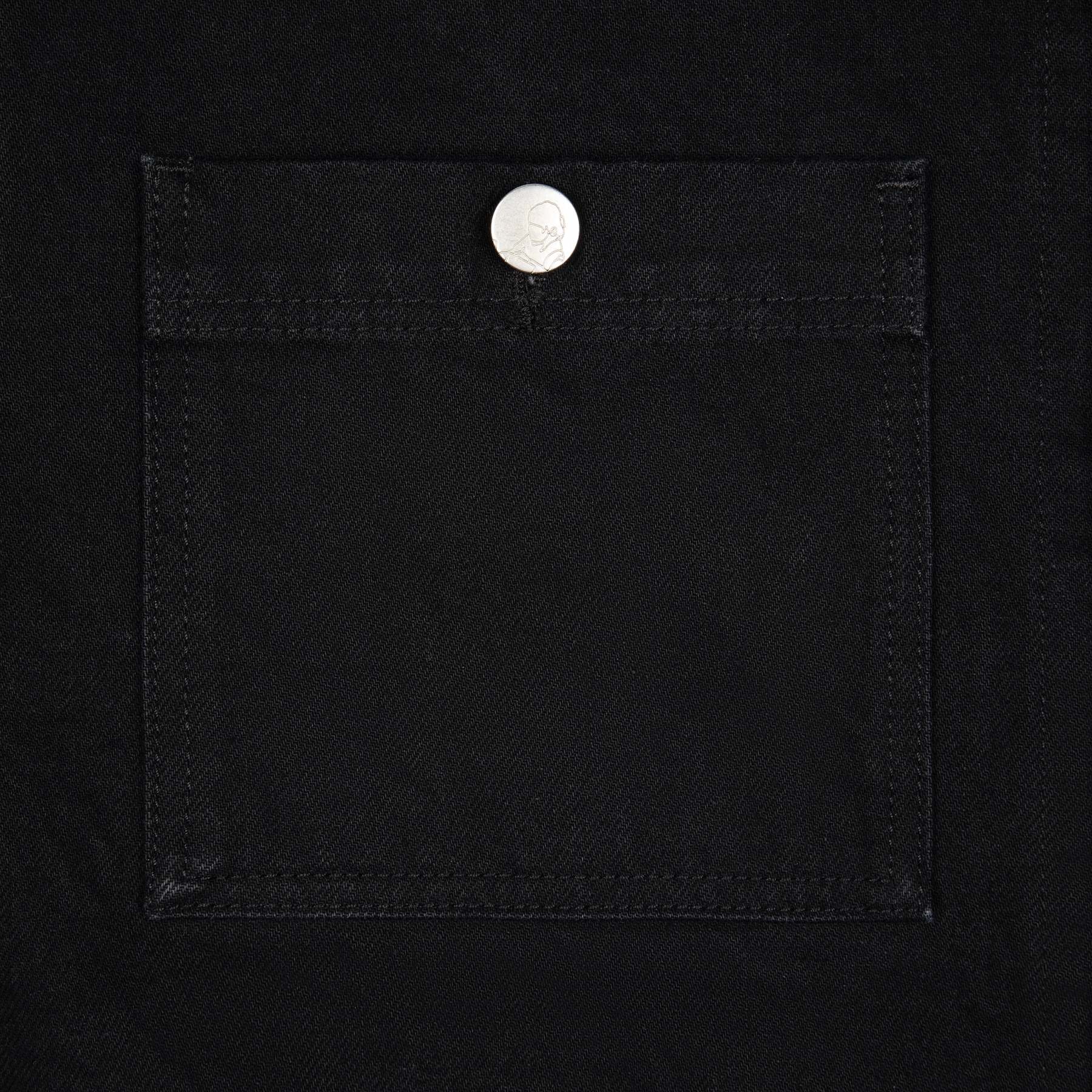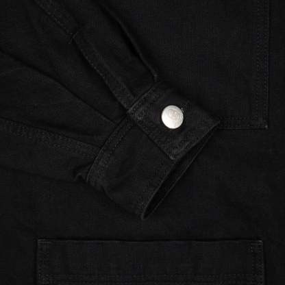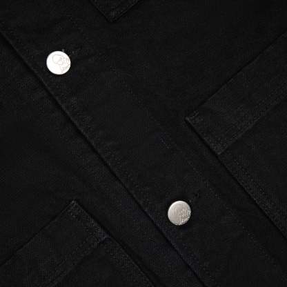 14oz denim / 460gsm brushed cotton hood / 100% cotton / embroidery on back and sleeves / pockets on front / custom buttons / fits true to size